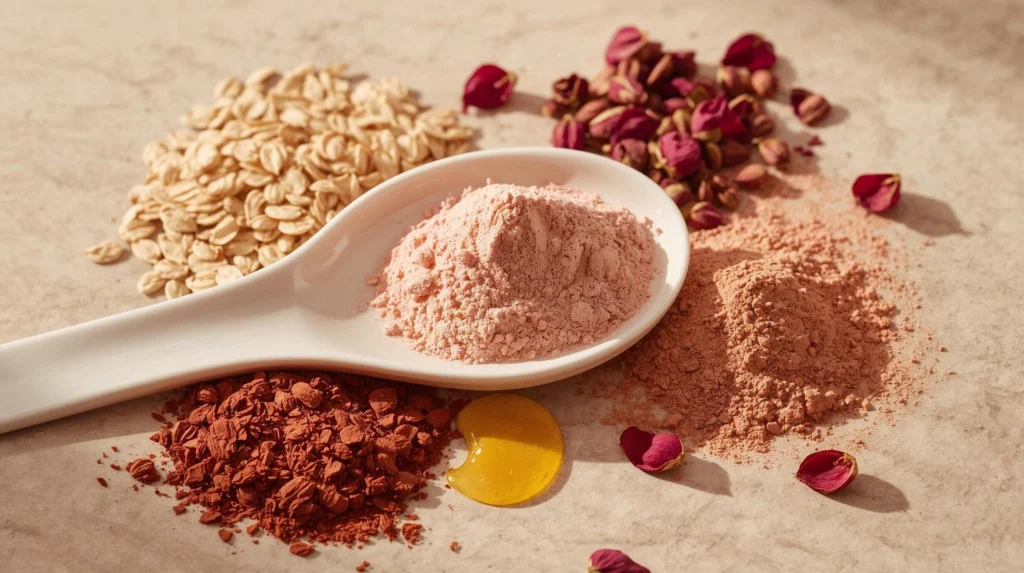 | Kaolin & Pink Clay | Mineral Earth | Acts as a magnet to detoxify pores and remove excess oil without drying. |